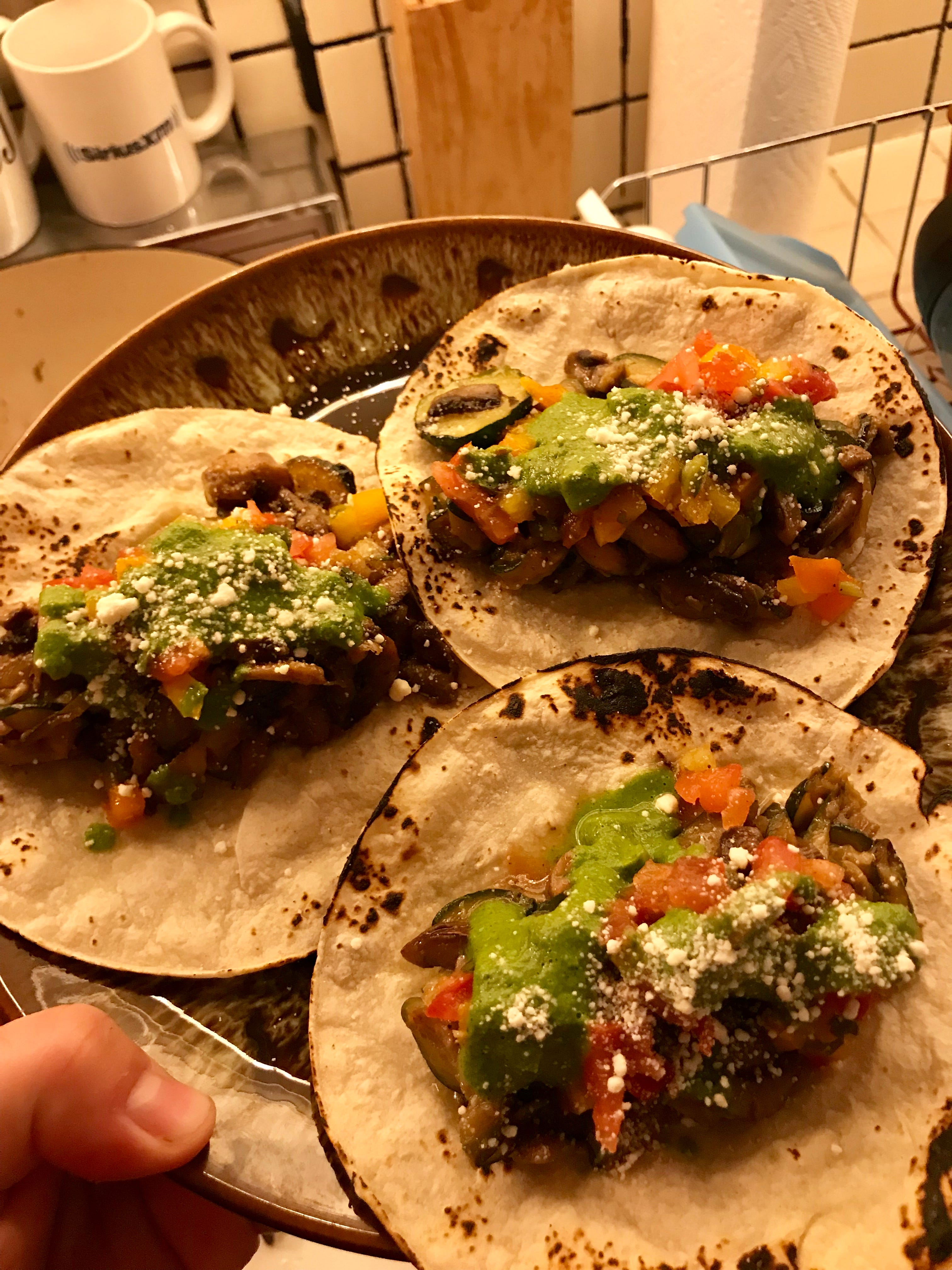 This recipe from Bon App teaches you how to make this pasta sauce by cooking down squash until it gets “jammy” as hell. It’s so delicious. Lately, I’ve been making the jammy squash but seasoning it with cumin, coriander, chipotle etc. and then adding some chopped up mushrooms (and maybe a lil more olive oil) towards the end and then using the veggies as taco fillings. Bonus: been making a super quick green sauce with cilantro + shallot + oil + s/p to put on top (also add some tomato salsa + cotija if you have it in fridge but literally it’s fine if you don’t).